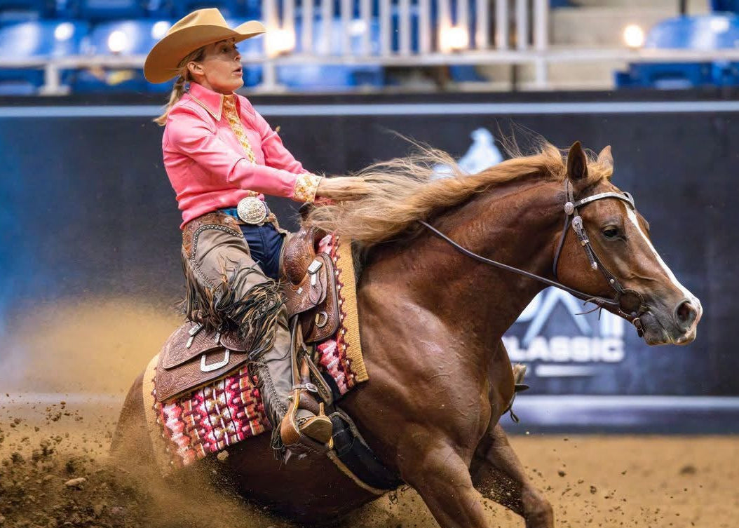 Naike Bell has spent over 3 decades riding horses and pursing her love of the sport, at first riding English when she was just 6 years old. Today, with impressive World & Champion titles under her belt (and on her belt buckles!), she trains with her husband at Brian Bell Performance Horses, starting 2 year olds and molding them into reining champions, specializing in Open and Non Pro training and sales. She’s dedicated to elevating the sport and putting the horse first. And we’re proud she always does it in Ride Southerly show shirts.